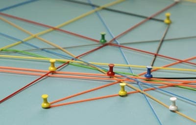 Network with pins, close-up...